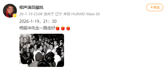 昨晚,多名相聲演員發文懷念楊振華先生。