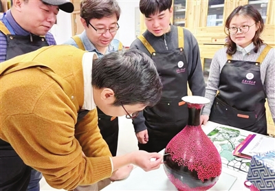 在天津工業大學近期舉辦的“中國傳統髹飾技藝人纔進修班”上,學員在創作作品。天津工業大學供圖
