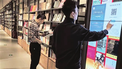 當天,有不少讀者進店看書、選書、挑選文創產品。“我小時候常去和平路上的新華書店看書、買書,給我留下了很美好的回憶。現在,新華書店都開到商場裡了,逛起來更方便了。”市民陳瑜點擊瀑布屏上“流動”的圖書封面時驚喜道,“能查看圖書簡介、閱讀電子書,還能玩詩詞飛花令等益智游戲,書店與時俱進,誰能不喜歡?”