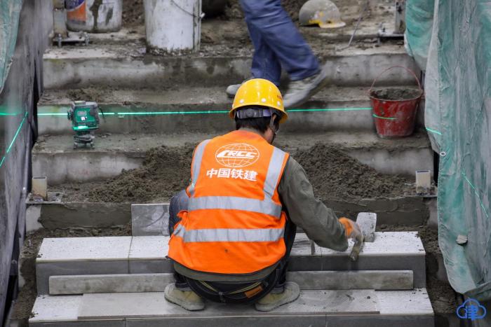 梅江東站的施工現場,機器轟鳴不絕,工人們穿梭忙碌,安全帽上的反光條在寒風中閃爍。他們不顧雙手凍紅,默契協作安裝鋁扣板、推進附屬結構施工,爭分奪秒趕進度,只為推動這條民心工程早日開通。百餘名建設者留守在崗,不避嚴寒、毫不懈怠,把對家人的思念,化作施工的動力。