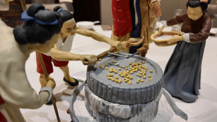 人們推磨、濾漿、點鹵