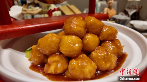 淮南豆腐宴菜品“劉安點丹”。中新社記者儲瑋瑋 攝