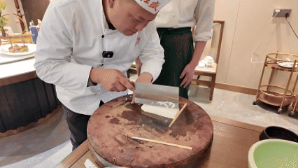 嫩豆腐在大廚精湛的刀功下如菊花般綻放