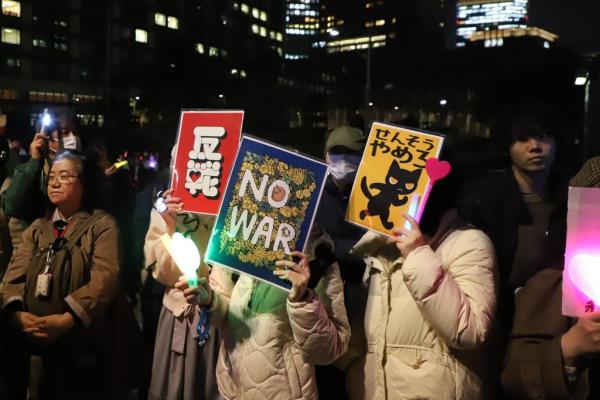 2026年3月19日,人們在日本東京國會議員會館前參加抗議集會,對高市早苗政府近期釋放修憲信號、決定部署遠程導彈等危險政策動向表示抗議。新華社記者陳澤安攝
