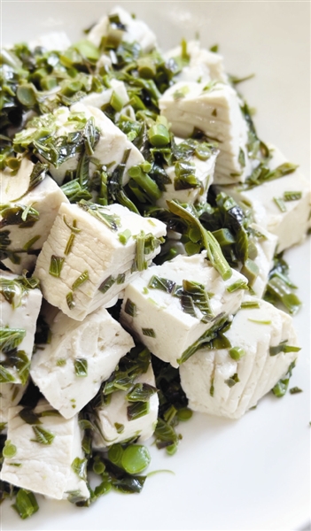 “香椿拌豆腐則講究食材的精准處理。”周小迪介紹,香椿焯水是關鍵,入沸水焯至顏色變翠綠即刻撈出。再將香椿切細末備用,焯水時間過長會失去香椿的嫩度與獨特風味。豆腐需選用北豆腐(硬豆腐),切均勻小塊後焯熱水,這一來能去除豆腥味,二來是要讓豆腐定型——避免後續攪拌時碎裂。最後將香椿末與豆腐混合,淋上香油、加少許鹽拌勻即可,無需其它作料提鮮,香油的醇香與香椿、豆腐的鮮爽相融,口感清爽解膩。